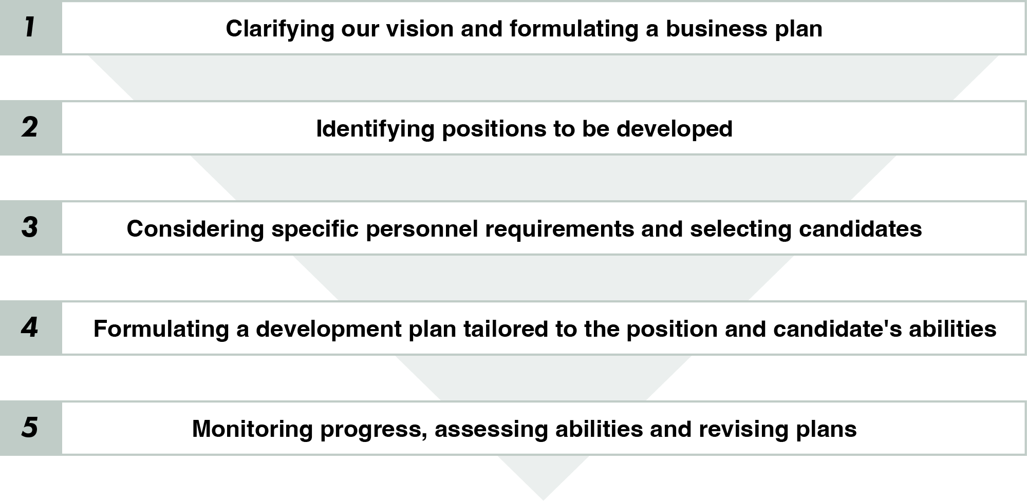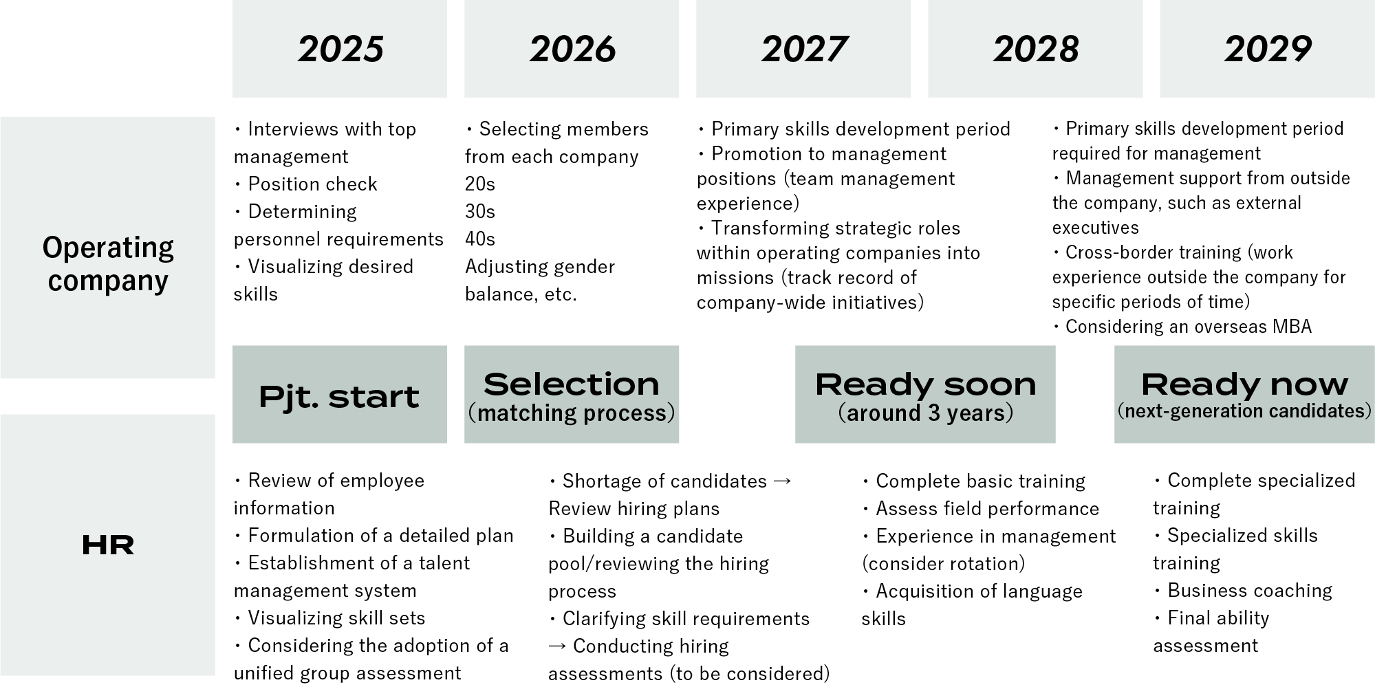 In order to achieve sustainable corporate growth, cultivating successors from a long-term perspective is a key priority of our Group. We believe it's essential to secure management candidates with strong leadership capabilities, not only those who have led the field as top performers within the industry, but also those who can establish new business domains and pursue further growth. In advancing this program, we also expect secondary benefits, such as retaining top talent and invigorating the entire organization through mid-term human resource development.