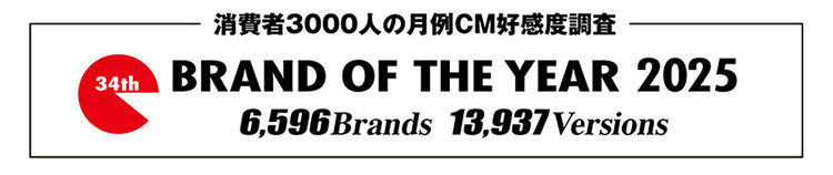 CM総合研究所が主催する「BRAND OF THE YEAR」は、関東1都6県在住の一般モニター男女3,000人を対象にした月例CM好感度調査に基づき、CM好感度の高かったブランドを顕彰する賞です。今回は東京キー5局で2024年11月度から2025年10月度までにCMをオンエアした2,648社 / 6,596銘柄 / 13,937作品が対象となり、当社グループがCM制作に携わった計4銘柄がトップ10にランクインしました。